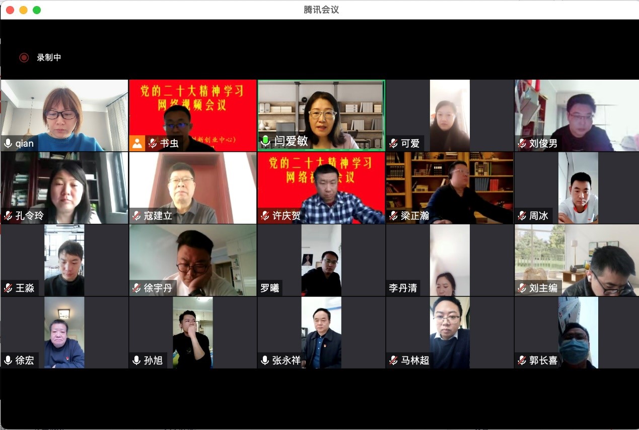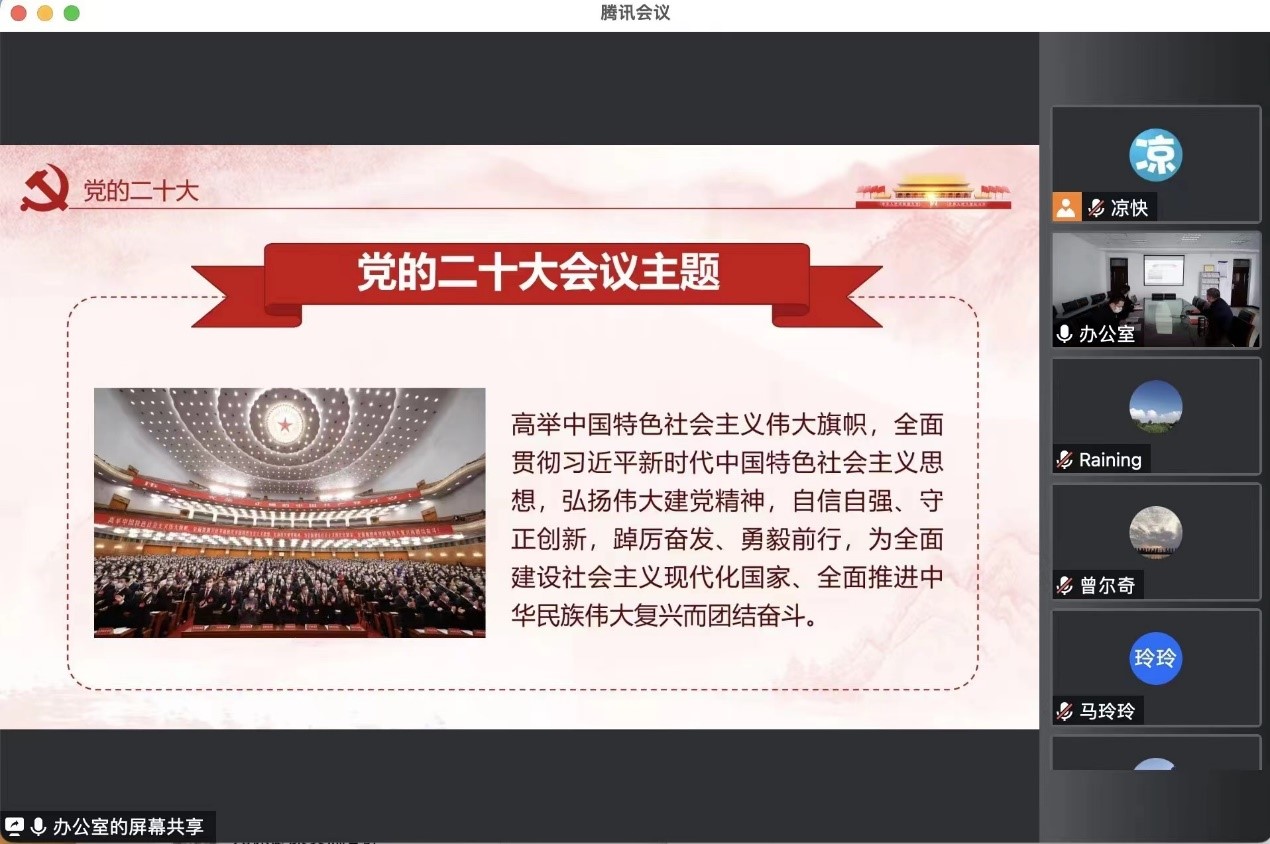 近日,招生就业处直属党支部采取线上形式召开党的二十大精神学习会,直属党支部书记张永祥领学党的二十大精神,并对支部深入学习贯彻党的二十大精神进行安排部署。会议指出,学习宣传贯彻党的二十大精神是当前和今后一个时期全党全国的首要政治任务,全体党员要深入学习领会党的二十大报告中提出的一系列新思想新观点新方略,自觉把思想和行动统一到深刻学习领悟党的二十大报告精神上来;把学习贯彻党的二十大精神和开展业务工作紧密结合,落实落细教育部2023届高校毕业生就业创业工作视频会议精神,确保学校毕业生充分高质量就业,推进学校招生、就业和创新创业工作再上新台阶。11月中下旬以来,招生就业处直属党支部还组织开展了党的二十大精神学习征文比赛和党的二十大精神学习知识竞赛等系列活动,持续掀起党的二十大精神学习热潮。