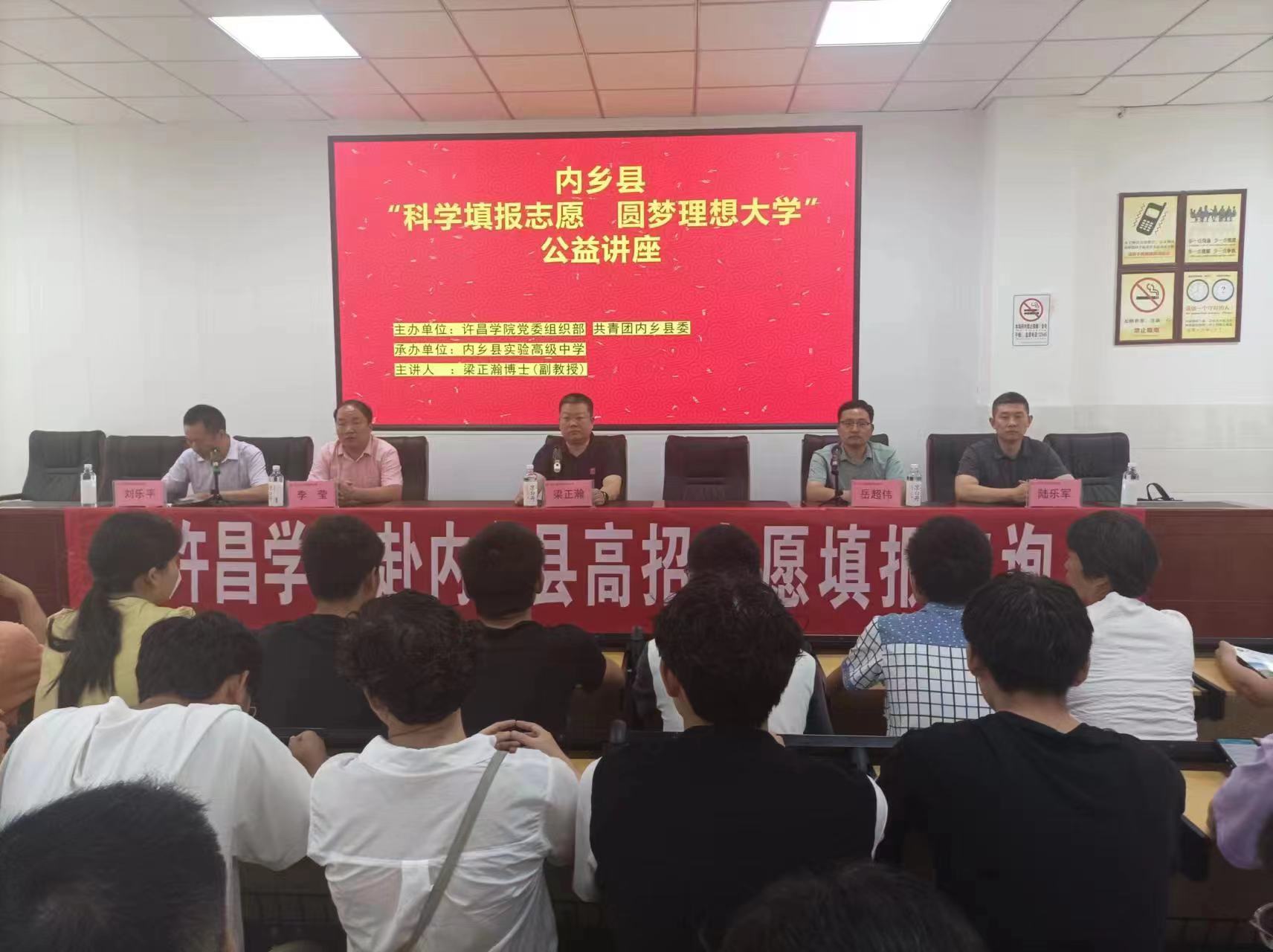 6月28日至29日,在高考放榜和志愿填报之际,为更好的帮助指导内乡县高考毕业生精准填报志愿,在共青团内乡县委协助下,bet36体育在线招生专家团队到内乡实验高中开展高考志愿填报指导咨询活动。活动现场,bet36体育在线招生就业处专家以“科学填报志愿 圆梦理想大学”为题开展公益讲座,现场300多名教师、家长及考生参加讲座。讲座结束后,专家们在现场开展志愿填报“一对一”咨询活动。学生家长和考生纷纷表示听了专家意见之后开阔了视野,填报志愿目标更加清晰明确。当天活动结束后,党委组织部一行到内乡县牧鑫生物科技有限公司洽谈购买学校“七一”表彰人员奖品,以实际行动贯彻落实消费帮扶政策。(图片由党委组织部提供)