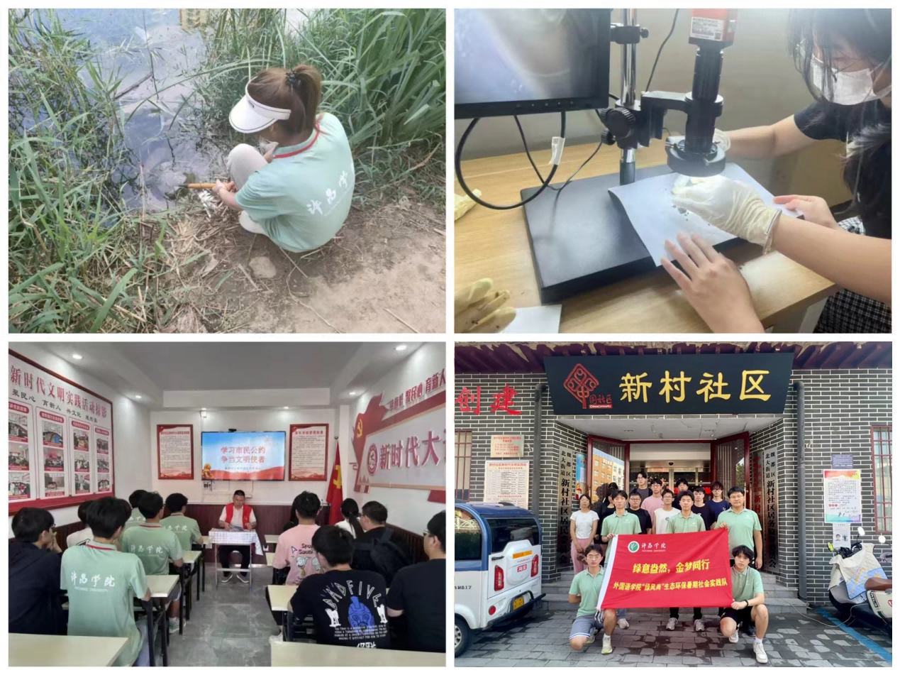 地理与空间信息学院“齐心协‘绿’”环保暑期社会实践队赴许昌饮马河段开展实地考察,采集并分析河水样本,全面了解该区域的水质状况。此次调研不仅让团队成员深刻认识到环保的重要性,同时也进一步增强了在生态文明建设中的使命感和责任感。外国语学院“绿意盎然”暑期社会实践队在许昌新村社区开展垃圾分类和环保新计划。团队开展了一系列以实地调研为基础的环保知识宣传活动,推广绿色生活方式,提升了社区居民的环保意识,也激发了队员们服务社会、保护环境的热情。