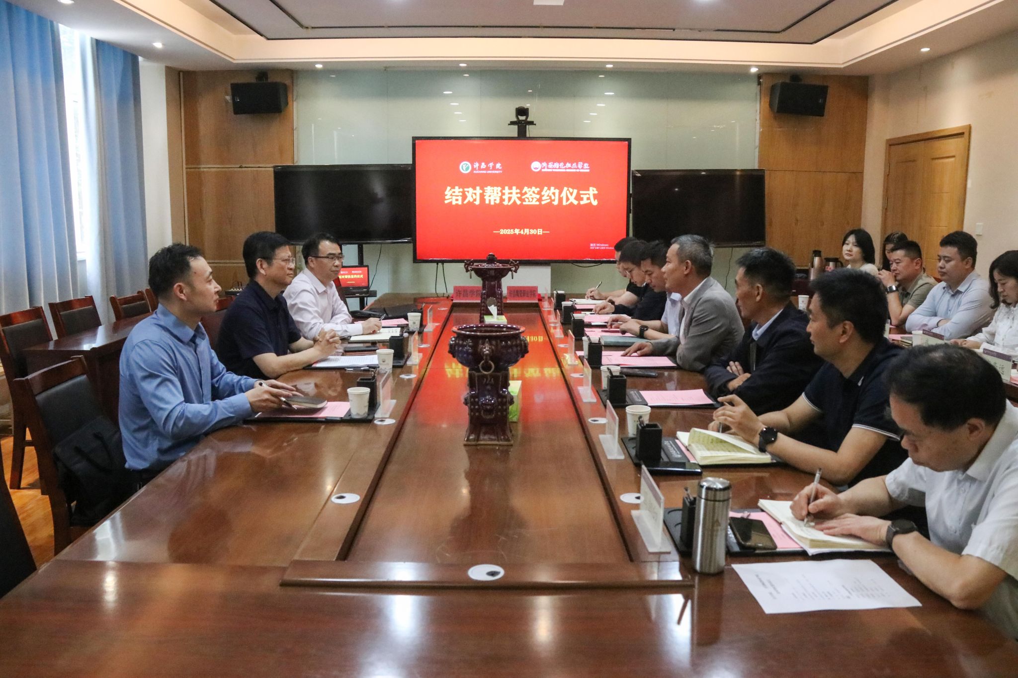 bet36体育在线党委组织部(干部教育培训中心)、校地合作办公室及许昌陶瓷职业学院相关负责人参加签约仪式。(图片由党委组织部提供)