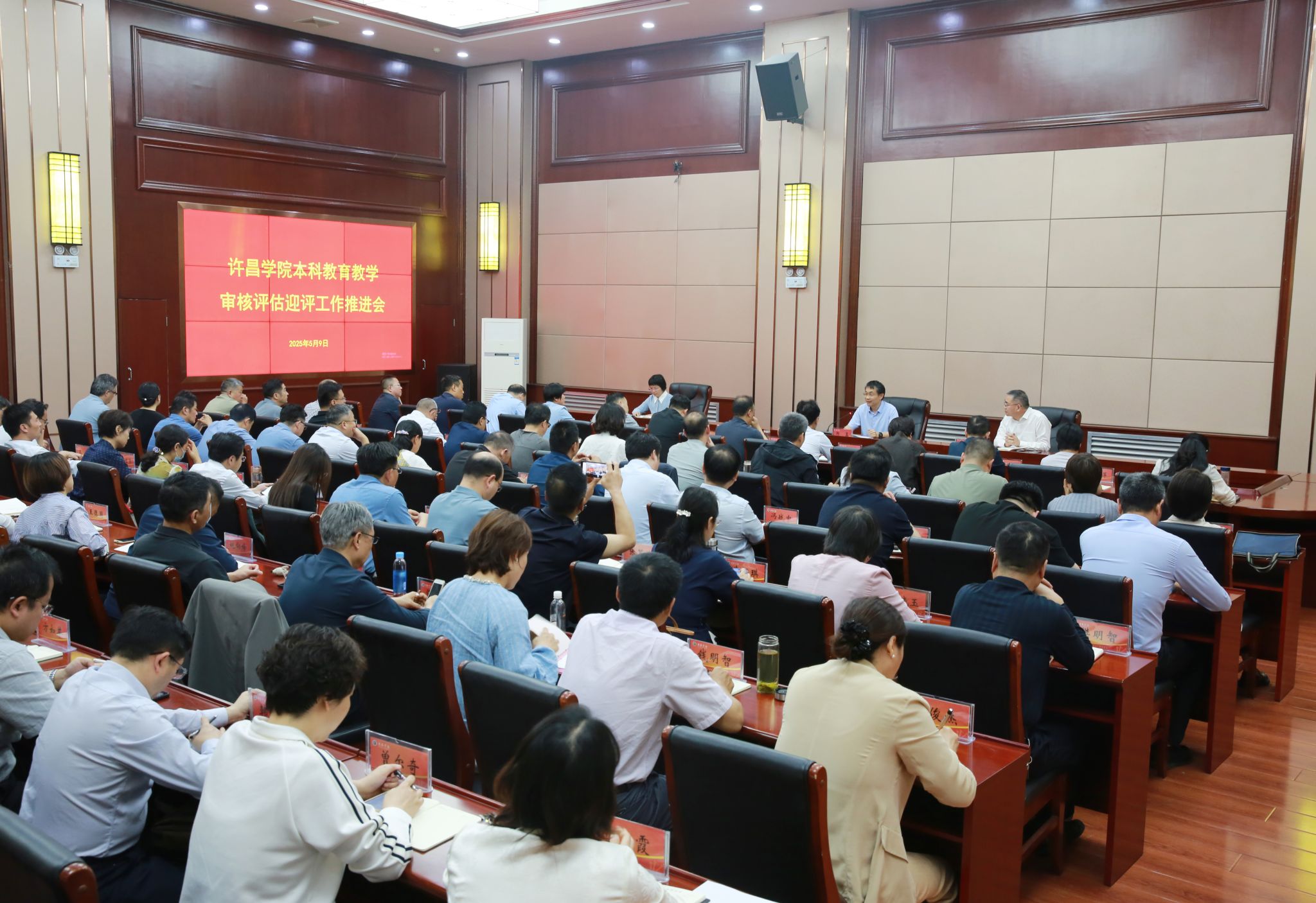 5月9日下午,bet36体育在线在学术会议大厅召开本科教育教学审核评估迎评工作推进会。校长郑直,副校长牛海鹏出席会议,全体中层正职、二级学院教学副院长及评建办全体工作人员参加会议。会议由牛海鹏主持。
