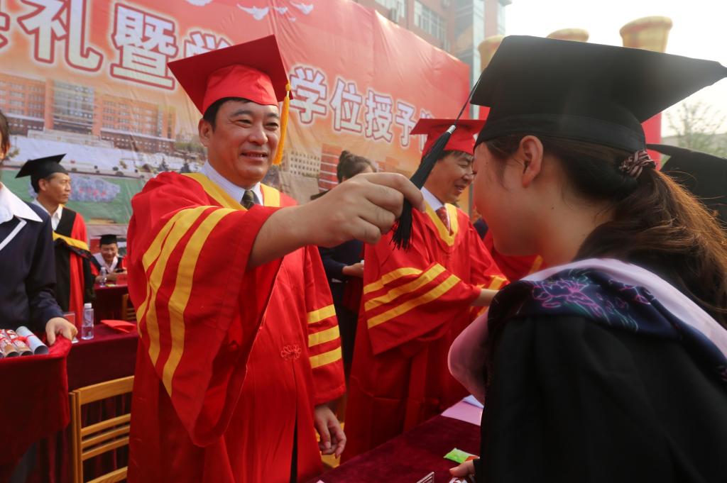 典礼仪式上,优秀校友代表杜俊鹏同志发言。省级优秀毕业生、文学与传媒学院考取武汉大学硕士研究生的张婧冉同学代表全体毕业生发言。她代表全体毕业生对老师们表示衷心感谢,向四年来朝夕相处、共同学习奋斗的同学们致以真挚的祝福。