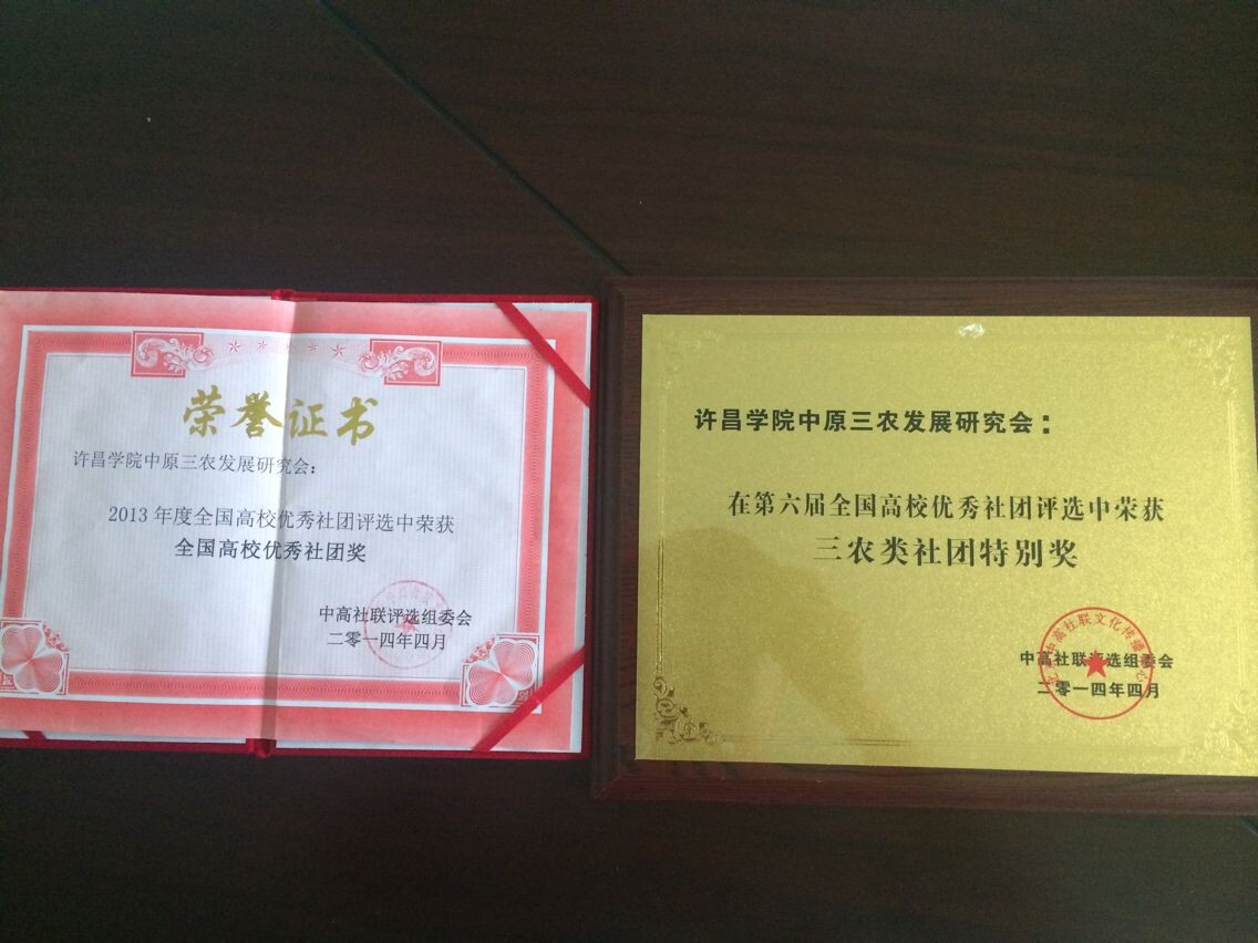 近日,由中国高校社团联合会主办,全国高校优秀社团评选组委会承办的第六届“全国高校优秀社团”评选活动揭晓,由bet36体育在线校团委、中原农村发展研究中心指导的中原三农发展研究会从众多竞争对手中脱颖而出,这是bet36体育在线再度获此殊荣。