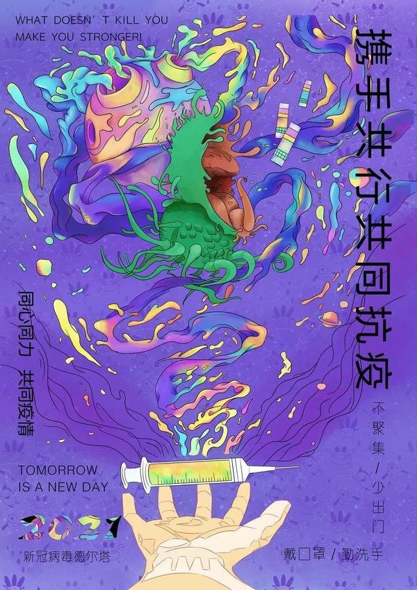 bet36体育在线2019级视觉传达一班学生王宇雯的《同心协力,共同抗疫》