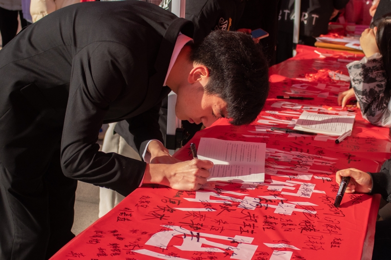 在弘毅广场,学校举办了宪法知识展板展示、宪法知识有奖问答、宪法条文抄写、宪法签名等教育性和趣味性相结合的活动,引导广大学生学习宪法知识、弘扬宪法精神,提升宪法教育的影响力和感染力。