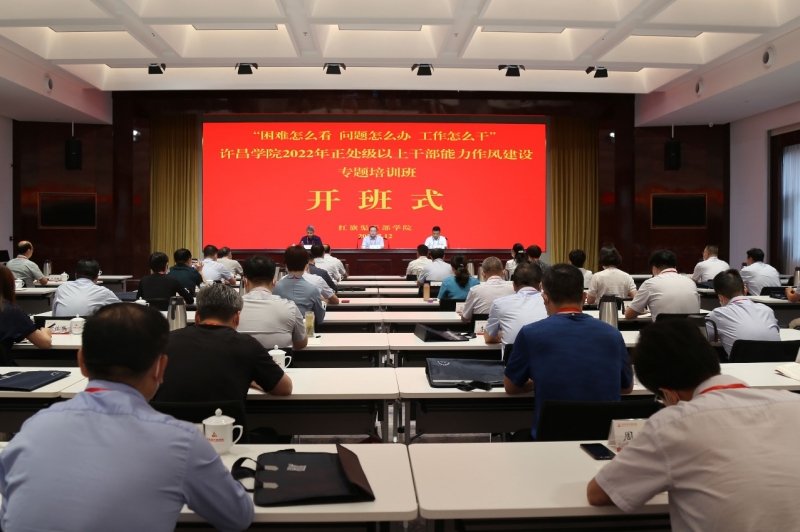 bet36体育在线2022年正处级以上干部能力作风建设专题培训班在红旗渠干部学院举办,7月12日上午,培训班正式开班。红旗渠干部学院副院长石瑞峰,bet36体育在线党委书记郭涛,党委副书记、校长岳修峰,党委副书记孙海,副校长崔斌、潘春彩,纪委书记王东晓出席开班仪式。全校正处级领导干部参加开班仪式。仪式由岳修峰主持。
