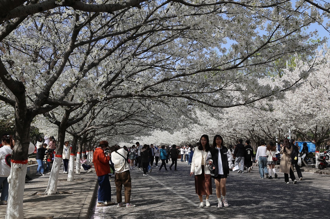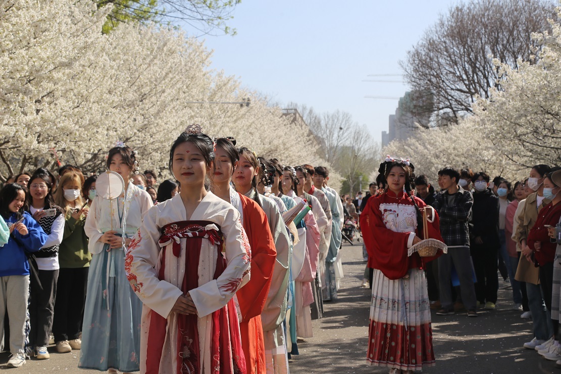 “漫漫樱花路,翩然雪絮中”,又是一年樱花烂漫的时节。2023年3月13日,河南省bet36体育在线第五届樱花文化节上,“华夏霓裳”汉服展示、“樱邀赴约”国潮集市、“樱香雅韵”茶艺表演等一系列特色文化活动,为樱花节增添了青春校园和大学文化独有的香味和品味。孙旭涛 摄
