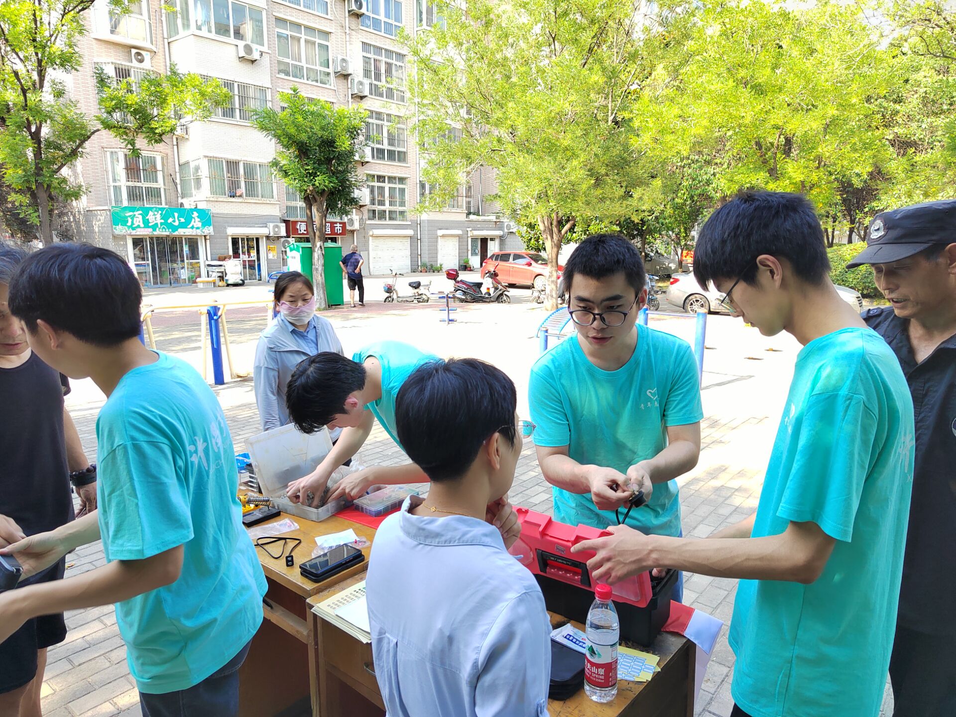维修进社区,让物件“活起来”。践行奉献初心,技能服务社区。电气与机械工程学院的20余名青年志愿者,在这个烈日炎炎的夏天,毅然搬起维修设备,穿梭在大街小巷,摇身变为能工巧匠,发挥专业特长,先后在天宝路街道东湖社区、天城丽景、德科苑、空港新城等开展家电义务维修志愿服务活动,运用所学专业的知识和技能以及维修实践经验,为社区居民送来的家电排查故障,进行维修,让“停摆”的电器“活起来”。