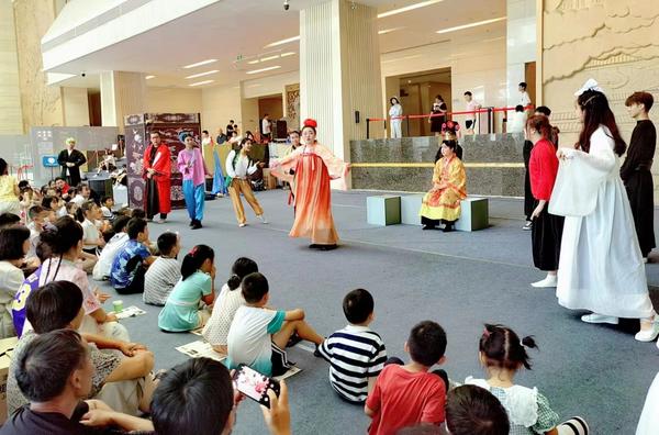 大河网讯 “王小二加油!王小二加油!”到了抢夺宝船的时候,现场的小朋友眉头紧锁、聚精会神,不错过演员们的一举一动,宝船夺回后,他们手舞足蹈,为剧中的角色欢呼呐喊……2023年7月8日,在河南省许昌市博物馆,儿童剧《宝船》的演出获得了小朋友们的喜爱。