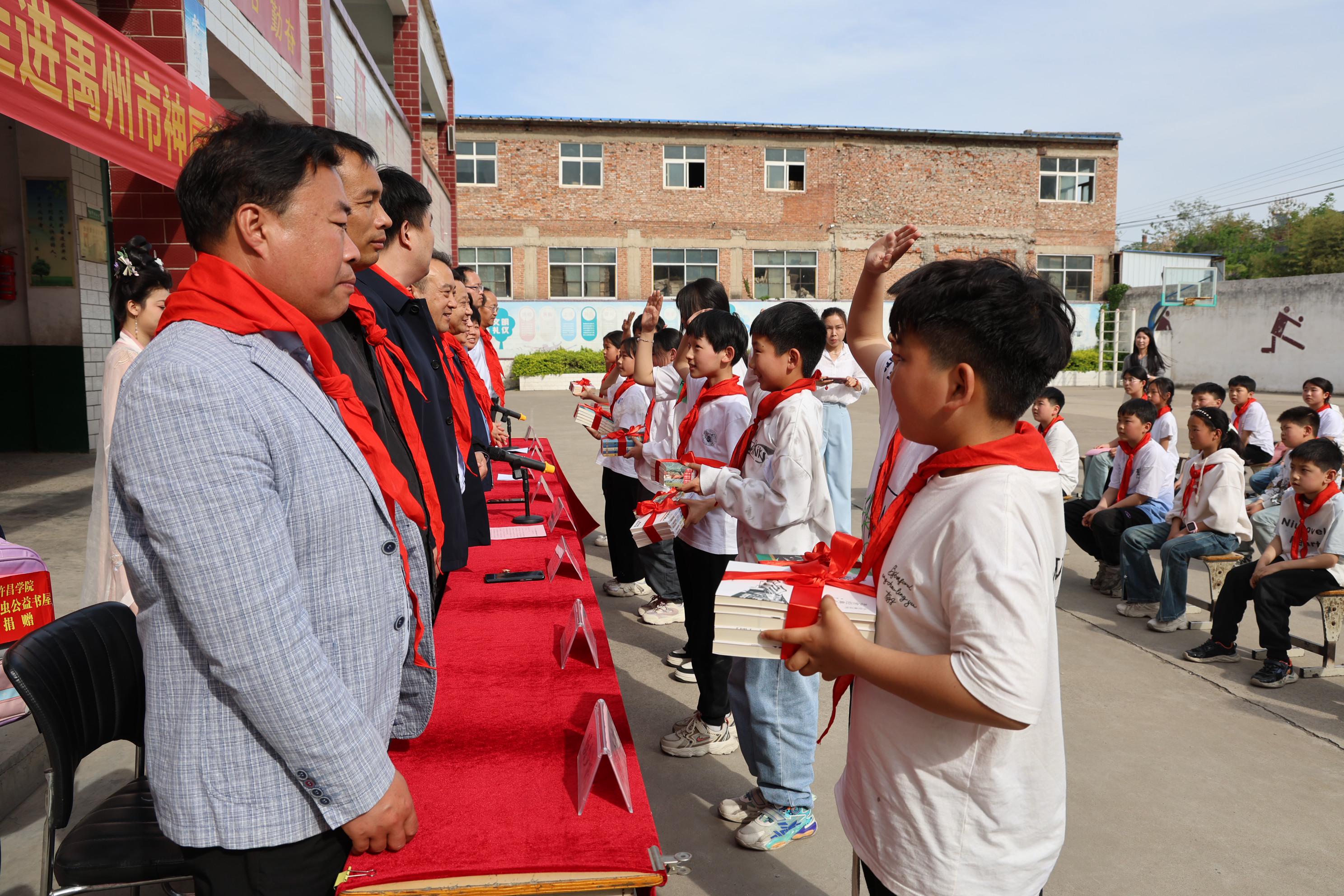 仪式上,与会领导共同为学生代表发放了赠书及学习用品。