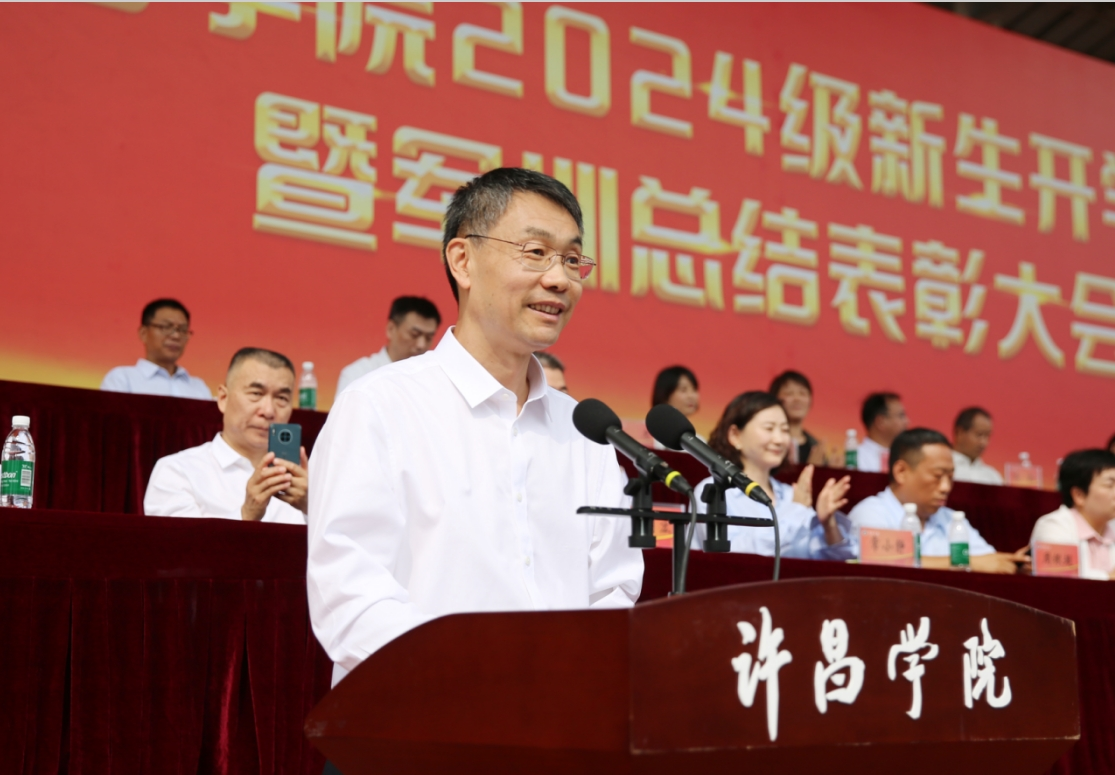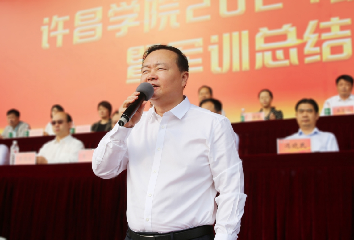 郑直在大会上讲话,并为2024级新生讲授新学期开学“思政第一课”。他代表学校向2024级新同学表示热烈的欢迎,向全体军训教官、参训老师、医务及后勤人员致以衷心的感谢,向圆满完成军训任务的全体同学表示热烈的祝贺。