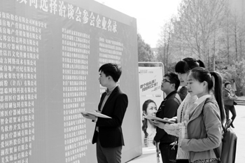 对于今年学校的这一新举措,该校应届毕业生郭志远表示:“设置企业名录展板让我们很快了解招聘会的大致情况,并迅速锁定目标,节省了时间和精力。”