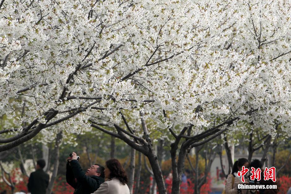 随着天气转暖,河南bet36体育在线樱花大道上的樱花绽放如雪,一派春意盎然的景象。图为3月24日,游客在河南bet36体育在线樱大道上赏樱花。中新社发 牛原摄影