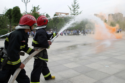 ???????????????????????????????????????????? 消防战士在现场稀释烟雾