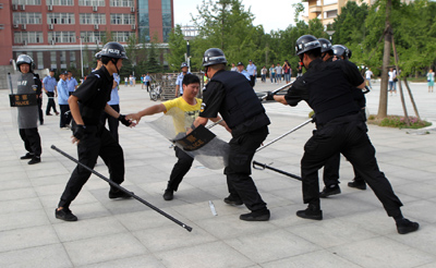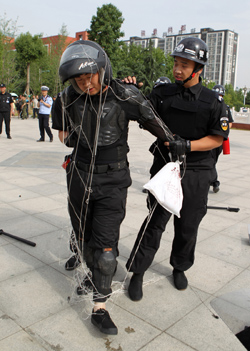 ????????????????????? 特警合力制伏一名“暴徒”。本版图片均由记者牛书培摄