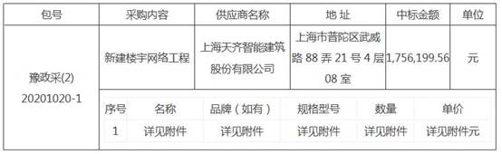 本次中标公告在《河南省政府采购网》《河南省公共资源交易中心网》上发布。中标公告期限为1个工作日。2020年10月15日 至 2020年10月15日