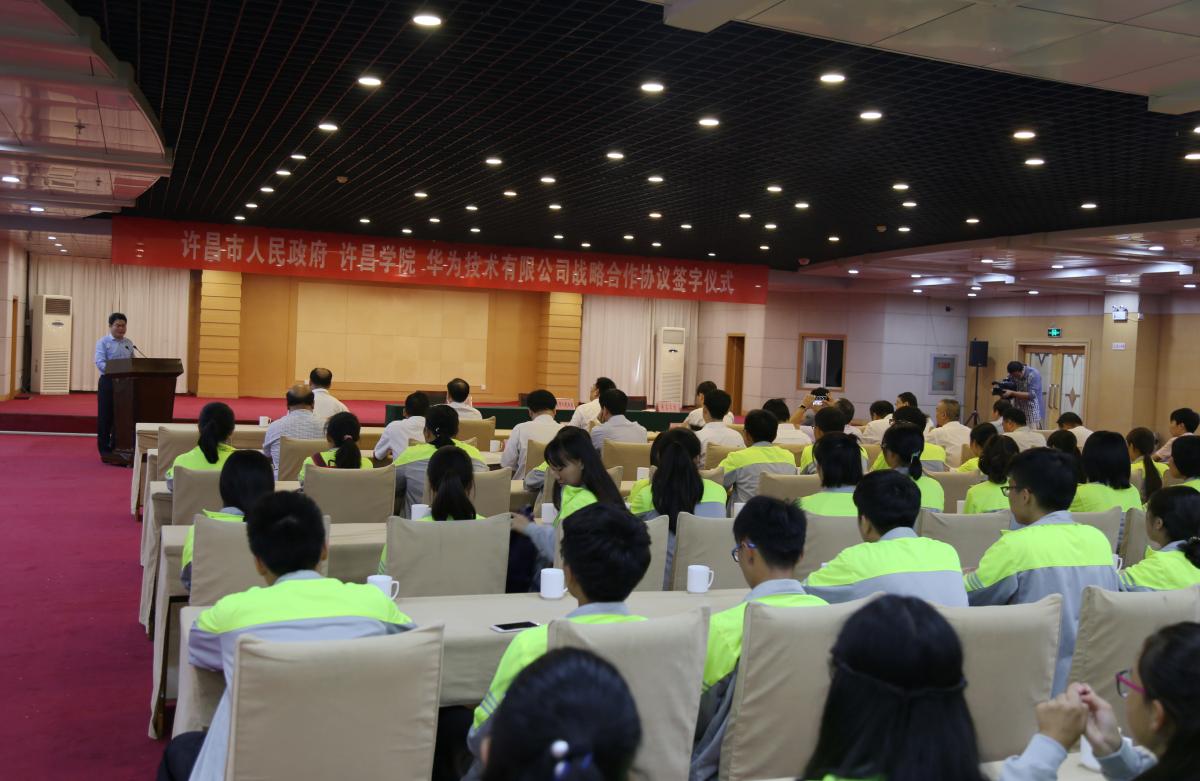 华为技术有限公司中国区副总裁、南区总裁李伟在仪式上表示,华为全力支持许昌市、bet36体育在线在智慧城市、智慧校园建设,人才培养,服务许昌等方面深入合作,共同为许昌的发展做出努力。(摄影:宁智沛)