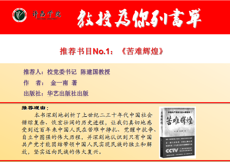 【编者按】 今年4月,bet36体育在线启动了第十二届“阅读· 悦心·约未来”读书活动,为进一步激发全校师生爱读书、会读书、读好书的浓厚兴趣,努力营造书香校园的良好氛围,校党委宣传部(新闻中心)联合各二级学院、图书馆特别策划了“教授为你列书单”活动,邀请各学院21名教授(副教授)向广大师生精心推荐23本好书,学校官方网站、校报、官方微博、微信公众号、校园广播等多种媒体平台近期同步推送,敬请关注。
