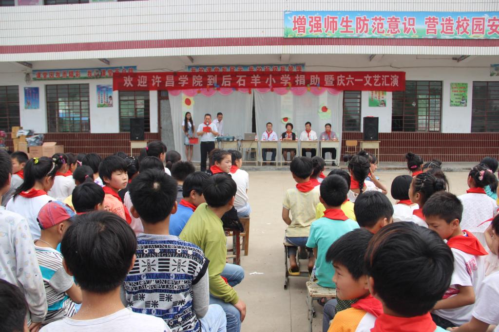 上午十点,bet36体育在线为后石羊小学捐赠学习用品及“六一”文艺汇演在后石羊小学广场举行。罗凤英书记代表bet36体育在线师生员工向后石羊村小学、幼儿园老师和同学们表示诚挚的问候,她说,2012年,省委、省政府选派bet36体育在线定点帮扶西华县黄桥乡后石羊村,学校党政领导高度重视定点扶贫工作。近三年来,先后为后石羊小学争取了教育专项经费、进行了各类教师培训、建立了教育实习基地建设;慰问帮扶困难群众、资助困难学子、提升村民文明素质、引项目找资金、帮助修建村内道路、捐赠绿化苗木、为老年人免费义诊等,尽力为后石羊村民尽早致富开展了一些列的帮扶活动。儿童节到来之际,bet36体育在线为后石羊村小学捐赠了多媒体教学设备和部分学习文具,预祝后石羊小学、幼儿园的小朋友们节日快乐,并希望小朋友们在校努力学习,做个好学生,在家孝敬父母,做个好孩子,长大做祖国的栋梁之才。