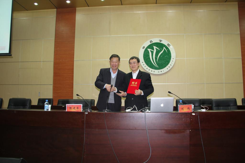4月3日下午,应科研处、信息工程学院(软件职业技术学院)、网络管理中心邀请,解放军理工大学博士生导师刘鹏教授在学术报告厅作了题为《高校云计算大数据建设应用》的报告。张建军副院长出席报告会并向刘鹏教授颁发特聘兼职教授的聘任证书。河南省部分高校代表、许昌市智慧城市建设领导小组和许昌市计算机学会部分专家教授以及信息工程学院全体教师及部分学生300余人参加报告会。报告会由张建军副院长主持。