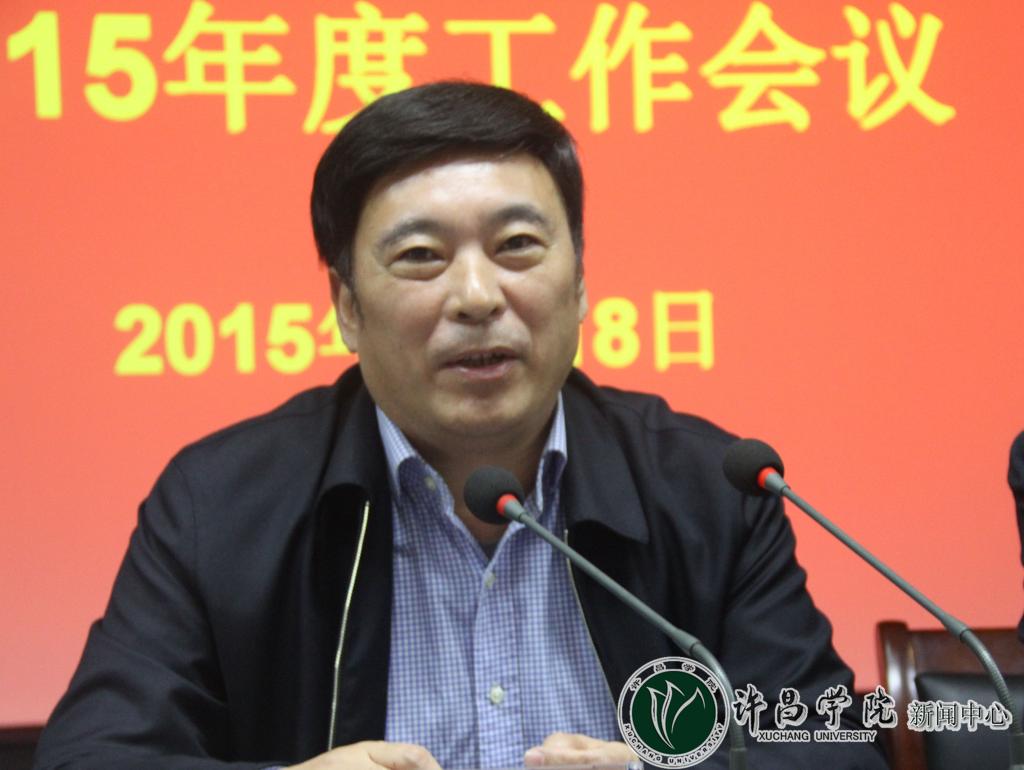 校党委书记王清义在会上发表讲话。王清义书记说,2014年bet36体育在线的师生还是“蛮拼的”,2014年取得的成绩是辉煌的,不仅在省内取得了很大的知名度,学校的转型发展成果更是被教育部赞誉为“许昌模式”。成绩的取得离不开团结务实、高效廉洁的干部队伍的努力和全校浓厚的干事创业、和谐有序的发展氛围。通过2014年的努力,学校的“坚持以内涵提升和创新引领为核心的转型发展”的办学思想和“建设特色鲜明的高水平应用技术大学”的办学目标,立足“地方性、应用型、服务性、国际化”的办学定位,符合了新常态下高等教育发展客观要求,并已基本成熟;学校进一步明确了“三个坚定不移”的办学思路:即坚定不移地走融入地方经济社会和文化生态的办学发展之路,坚定不移地走政产学研用相结合的办学发展之路,坚定不移地走开放办学发展之路。学校的发展契合地方经济发展的良好态势,并展现出强大的活力,学校以发展凝聚人心,形成了风清气正的内部环境,并得到了上级的肯定和社会的广泛赞誉。