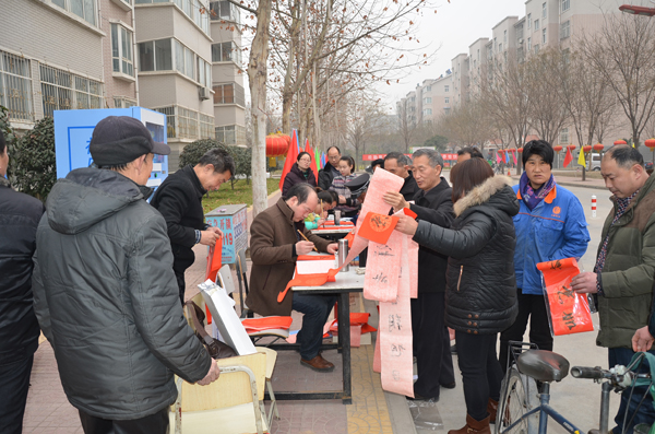 2月16日,后勤集团举行“迎春节,送春联”活动,为老师们送去最诚挚的新年祝福。此次活动特别邀请bet36体育在线书法协会会员张宏伟等老师为居民书写春联。为了能得到书法协会会员亲笔写的春联,老师们早早的就排起了长队。“百凤迎春朝旭日,五羊衔穗兆丰年”、“万象更新山青水秀,五羊献瑞日丽春华” 、“金马奋蹄载誉归,神骏回眸丰稔景”,一副副红红的春联,一句句祝福的话语,当老师们拿到写满祝福和美好憧憬的春联时,喜悦之情溢于言表。此次活动共送出春联150余副。