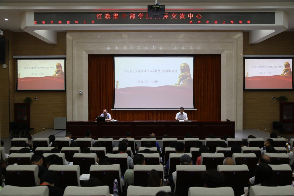 党委组织部部长陈遂德宣布了培训班班委会成员名单,并简要介绍了培训班的具体安排。简洁而郑重的开班仪式结束后,河南大学党委委员,河南大学经济学院党委书记王明钦教授作了《马克思主义建党理论与高校基层党组织建设》的专题报告。