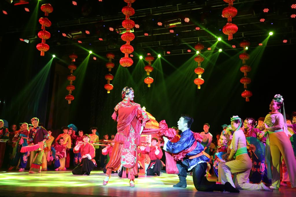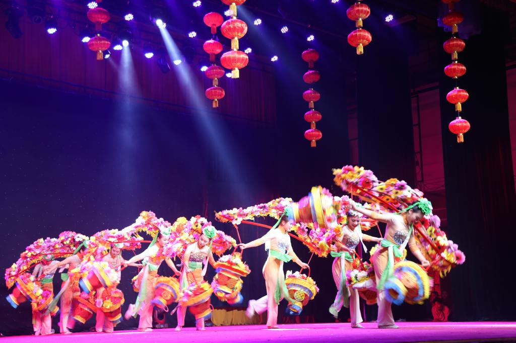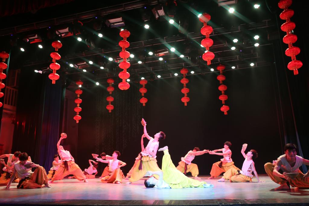 演出中,悦耳的霸王鞭、俏皮的颠花挑、豪气的大碗酒、喜庆的扭秧歌等极富中原民间乡味的舞姿让在场师生大饱眼福。模拟农民春耕场景,寄托人们“人强牛壮,丰收在望”的《打春牛》在表现农民兄弟质朴的品格,勤劳的本色的同时,也体现了他们对于生活的热爱;以河南著名民歌《编花篮》为蓝本创作的舞蹈《摘棉花》表现了一群妙龄少女活泼欢乐的劳动场景,轻盈灵动的舞姿,别具匠心的服装道具让人过目不忘;压轴舞蹈《抬花轿》将国家级非物质文化遗产“高抬火轿”和河南秧歌融合在一起,展现了河南秧歌特有的“大脚踩,大手甩”的特征以及独有的执扇方式和脚下律动。