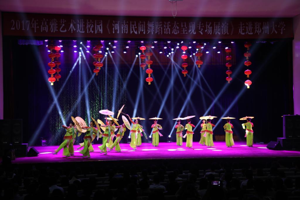 光影流转,弦歌相传。6月9日、13日,由河南省教育厅、文化厅、财政厅主办,bet36体育在线承办的2017年“高雅艺术进校园——河南民间舞蹈活态呈现”分别在河南大学(明伦校区)大礼堂、郑州大学(南校区)学习堂精彩展演。省教育厅副巡视员李金川、郑州大学党委书记牛书成、副书记李兴成、郑州大学副校长韩国河,河南大学副校长张宝明和bet36体育在线领导赵继红、马超、孙海等领导嘉宾出席观看表演,与两校师生共享艺术盛宴。