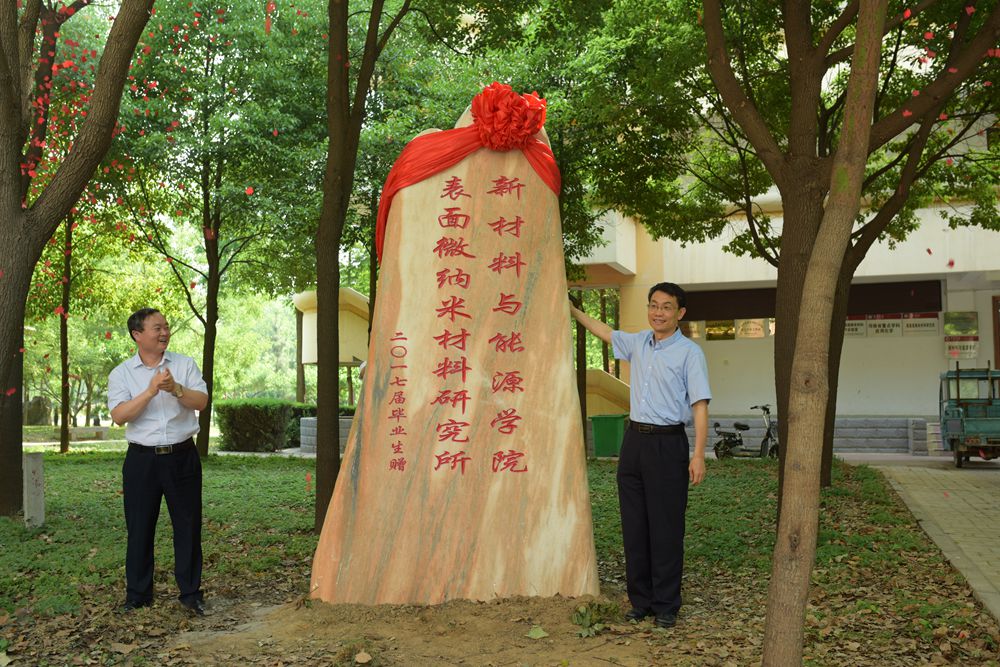 6月2日上午,bet36体育在线新材料与能源学院举行2017届毕业生纪念石捐赠揭幕仪式。校党委副书记孙海,副院长郑直、郭涛出席仪式,党委宣传部、院长办公室、学生处、团委、后勤管理服务中心、就业指导中心等相关单位负责人,新材料与能源学院2017届毕业生及师生代表参加了揭幕仪式。仪式由新材料与能源学院党总支书记崔凤巧主持。