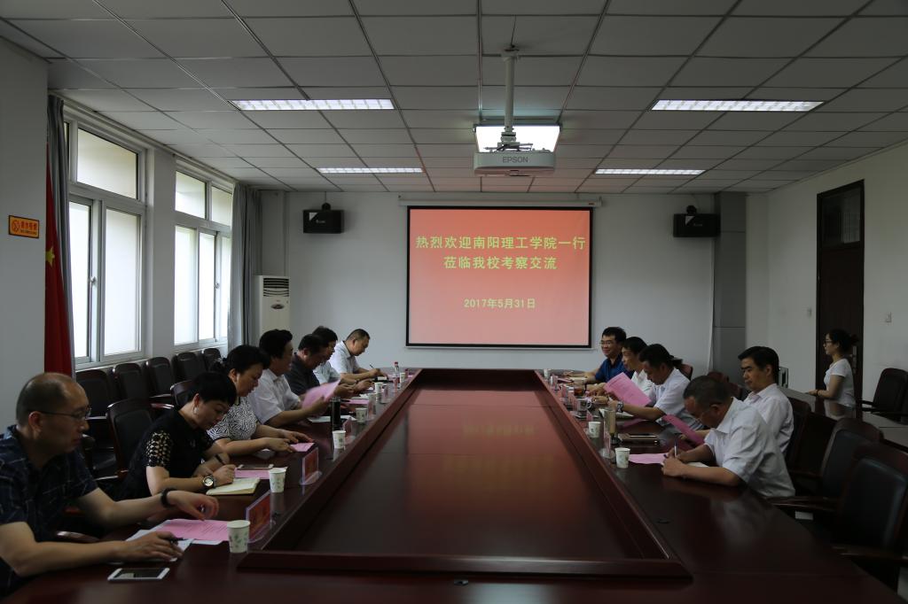 5月31日,南阳理工学院党委副书记秦鹏鸣、副校长陈世云一行9人到bet36体育在线考察交流校企合作工作。bet36体育在线党委副书记孙海、副院长郑直接待了来访客人,学校相关部门负责人参加了座谈交流。