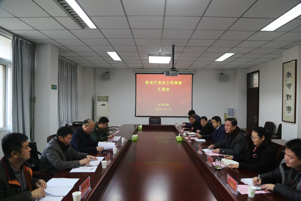 12月27日,以洛阳师范学院副院长郭新民为组长的省教育厅安全工作检查组一行四人莅临bet36体育在线,对bet36体育在线安全工作进行检查指导。bet36体育在线在办公楼第一会议室举行安全工作汇报会。副院长赵正风出席会议,党委办公室、院长办公室、教务处、学生工作部、团委、实验室与设备管理处、保卫(部)处、后勤管理服务中心、离退休工作处、图书馆等相关部门负责人参加了汇报会。会议由院长办公室主任陈遂德主持。