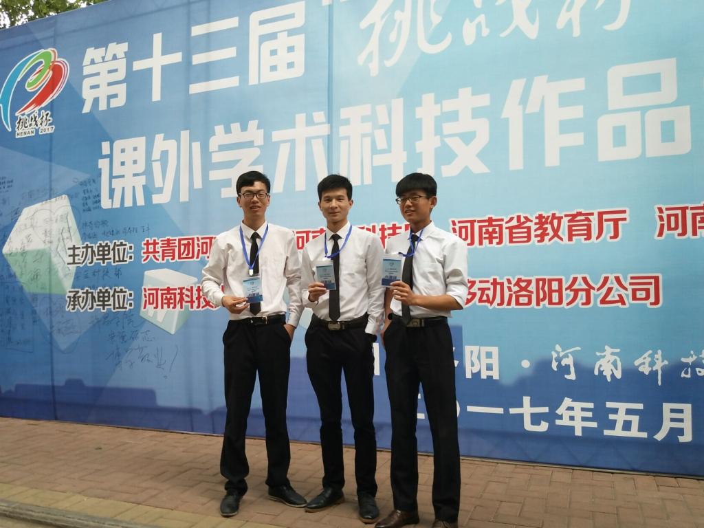 刘富生(中)和同学一起参加第十三届“挑战杯”全国大学生课外学术作品竞赛并获省级特等奖
