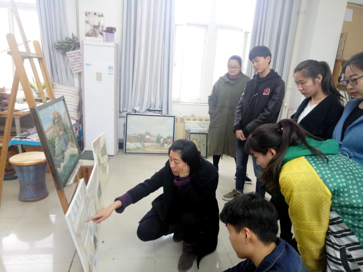 具象表现油画创研室老师在和学生讲评作品