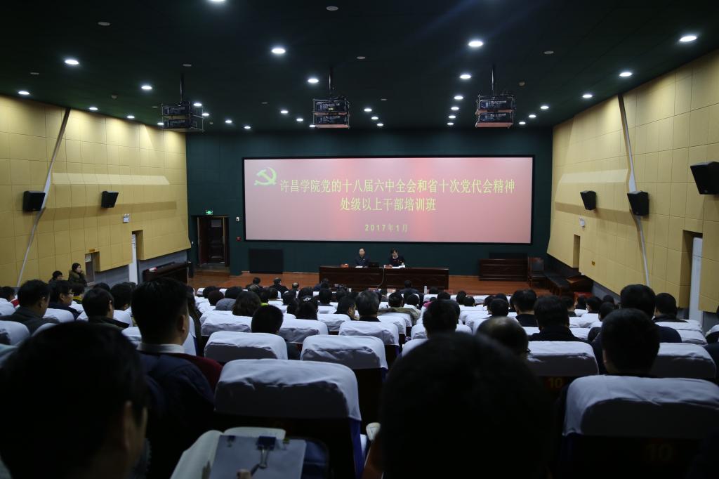 1月13日至15日,bet36体育在线在创新创业学院双创中心举办党的十八届六中全会和省十次党代会精神处级以上干部培训班。校领导赵继红、马超、赵正风、郑直、崔斌、黄怡俐、郭涛、罗凤英、杜志傲出席本次培训,全体处级干部、二级学院院长助理、主任助理共计192人参加培训。党委副书记马超、纪委书记罗凤英分别主持开班仪式和结业仪式。