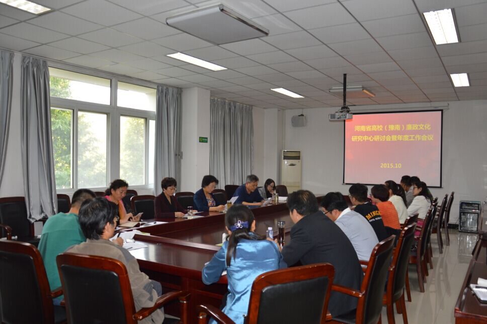 10月16日下午,河南省高校(豫南)廉政文化研究中心年度工作会议在办公楼第一会议室召开。校纪委书记、研究中心主任罗凤英出席会议并讲话,研究中心研究员、特邀教师及学生代表三十多人参加了会议。会议由法政学院党总支书记、研究中心副主任崔秀花主持。
