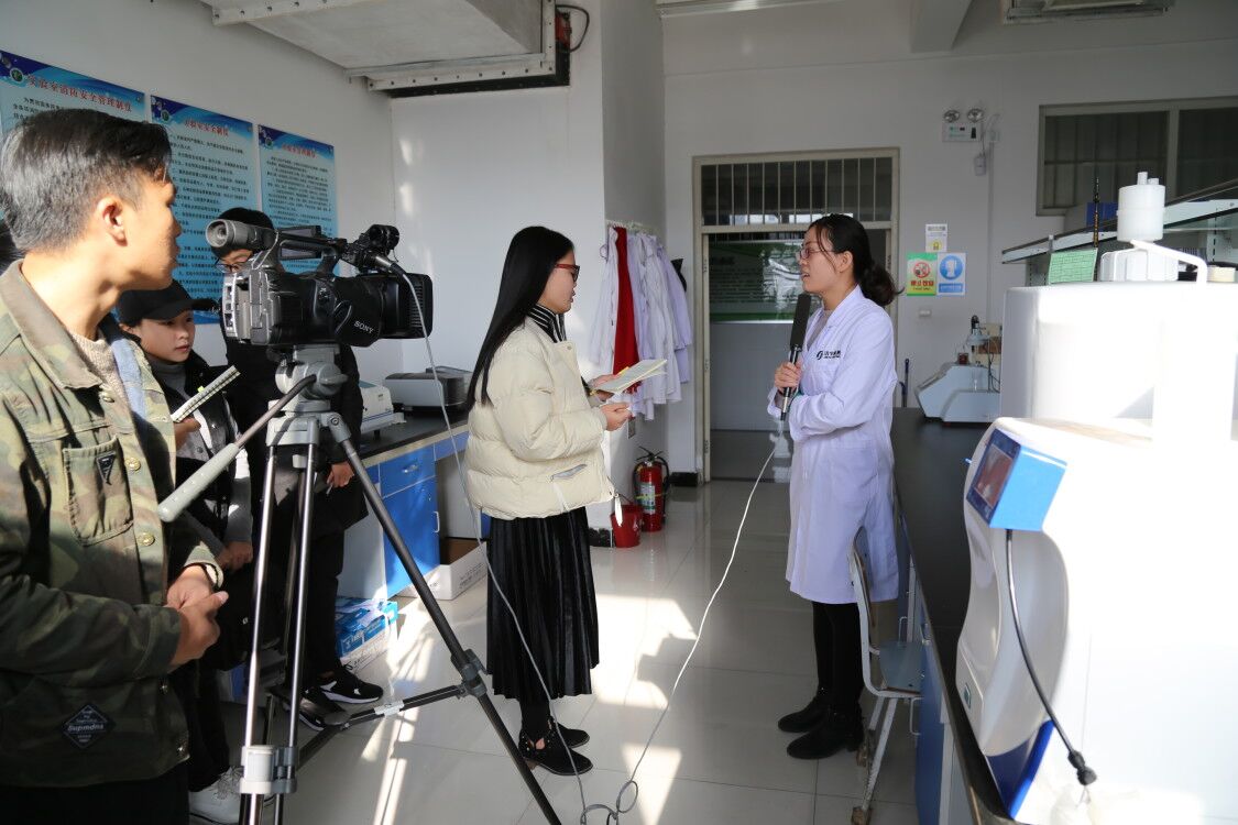 校媒记者在河南省食品安全生物标识快检技术重点实验室采访