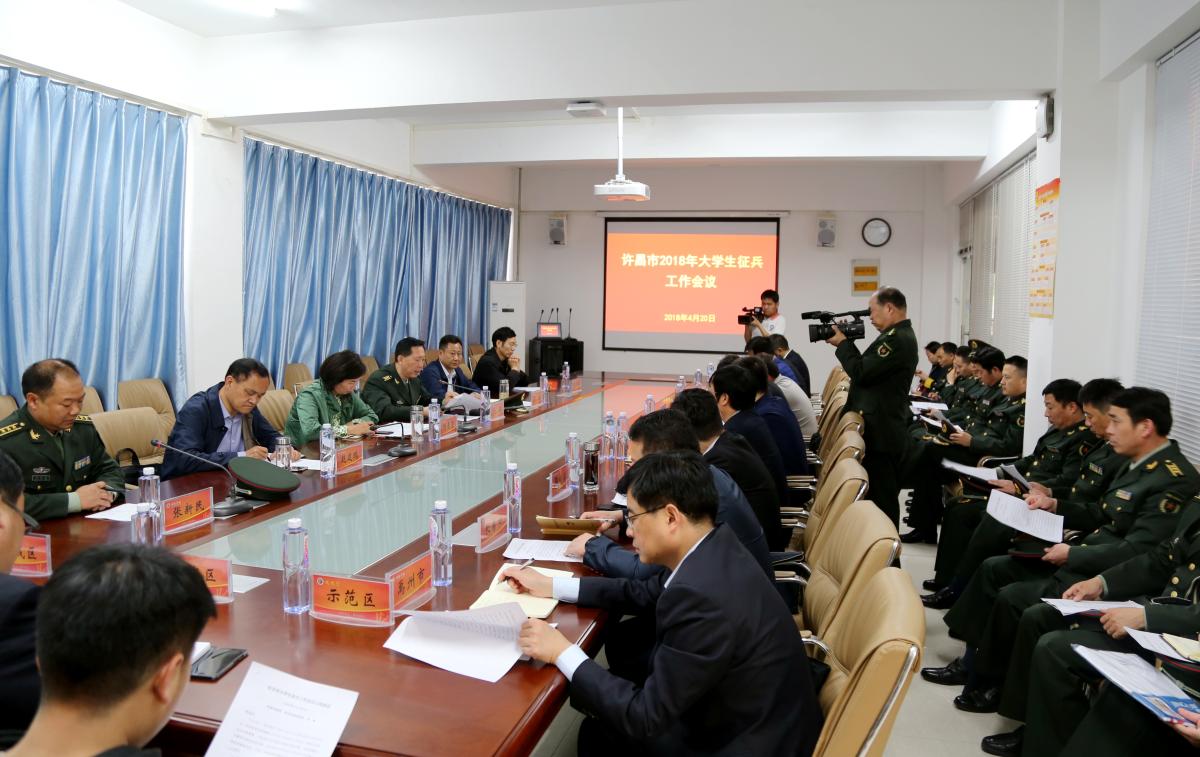 仪式结束后,许昌市2018年大学生征兵工作会议在bet36体育在线召开。会议向有关单位和部门传达了2018年全国和全省大学生征兵工作会议精神,安排部署了2018年许昌市大学生征兵工作任务。