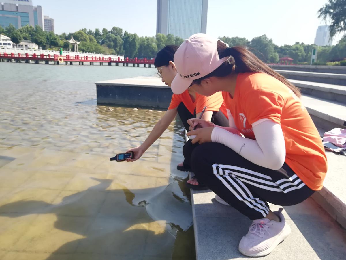 连日来,实践队员在指导教师李长坡的带领下,先后前往魏都区、东湖、鹿鸣湖、西湖公园进行实地考察。队员们结合专业知识,利用精密仪器和ArcMap软件对许昌市水系进行了数字化制图、水温湿度测量、水体位置及周边环境考察分析,并通过向市民发放调查问卷,了解许昌市民对水系保护的认识和态度。实践队员们结合专业知识,不畏烈日实地考察,为许昌市水系保护建言献策。(图片由各实践团队提供)