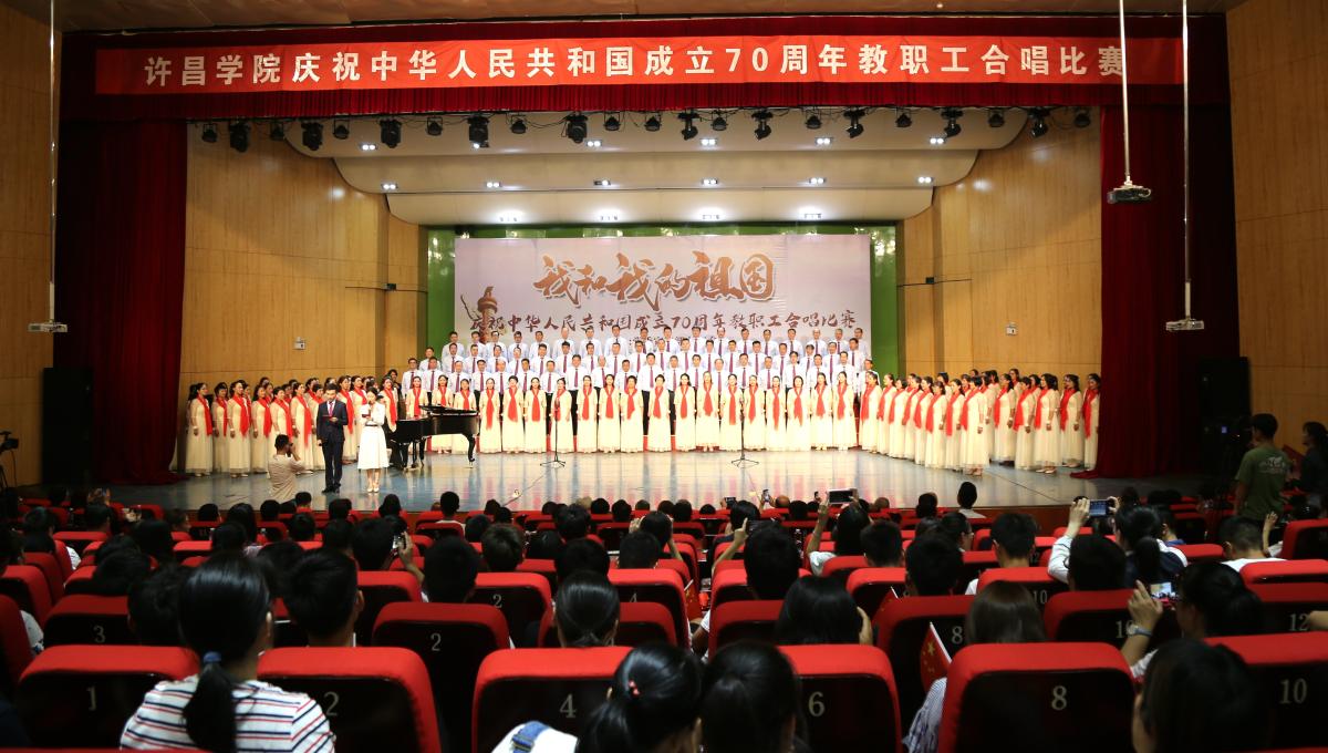 比赛在党群机关分工会、行政机关分工会、音乐舞蹈学院分工会带来的合唱《歌唱祖国》中拉开大幕,全体校级领导参加了合唱,观众挥舞国旗,齐声高歌,共同表达对伟大祖国的深深祝福。比赛中,来自全校29支分工会的教职工们满怀爱国热情,以歌铭志。《我的中国心》《我和我的祖国》《龙的传人》《今天是你的生日,中国》《江山》《映山红》《红旗飘飘》《国家》等脍炙人口的经典歌曲先后唱响,熟悉的旋律,深情的演唱,歌颂了新中国走过的70年光辉历程,抒发了教职工的爱国情怀,展现了教职工昂扬向上的精神风貌。bet36体育在线教职工合唱团、学生合唱团还带来了双双入选河南省教育厅举办的教育系统“歌唱祖国·出彩河南”庆祝新中国成立七十周年合唱比赛总决赛的《在太行山上》(新编)和《祖国万岁》。