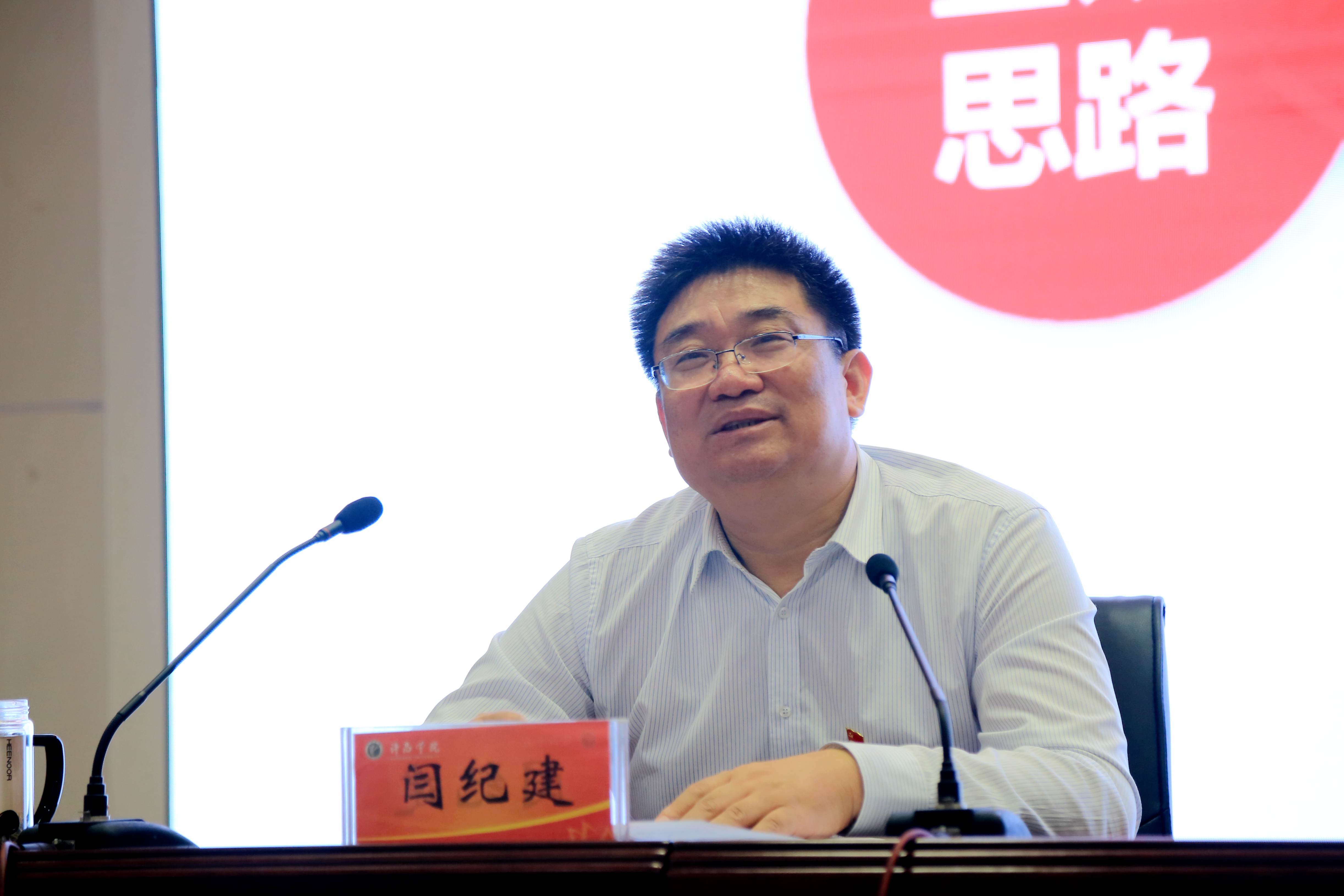 闫纪建书记结合高水平应用型大学建设、干部队伍建设实际和自身的学习心得体会,围绕立德树人、深化改革、担当作为三个方面,深入分析了事关当前学校发展的根本性、全局性、关键性问题,阐述了目前存在的差距不足与下一步整改的思路,并对打造一支敢于担当的干部队伍提出明确要求。
