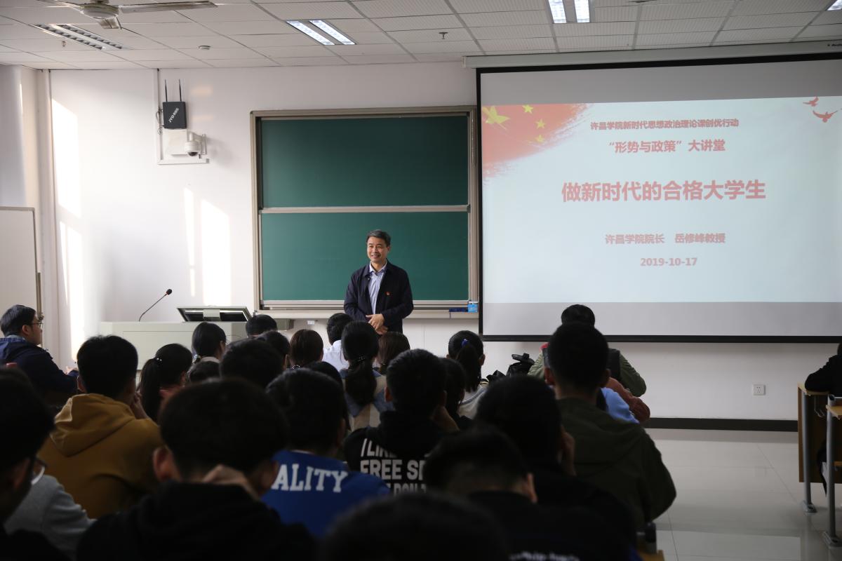 10月17日上午,院长岳修峰来到联点的电气(机电)工程学院和化学化工学院,以《做新时代的合格大学生》为题,给学生上了一堂精彩的党课。他结合新时代的历史任务和习近平总书记对广大青年学生的要求,以大量的生动案例,教育广大同学努力做政治合格、能力合格、品行合格的新时代合格大学生。