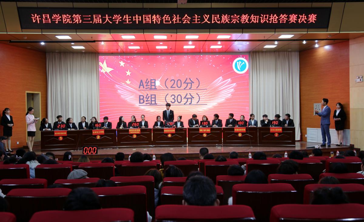 11月29日下午,由党委统战部主办,教育科学学院承办的bet36体育在线第三届大学生中国特色社会主义民族宗教知识抢答赛决赛在学术报告厅举办。党委统战部、学工部、保卫部、校团委和教育科学学院等单位主要负责人参加活动,并为获奖单位颁奖,近300余名师生代表观看了比赛。