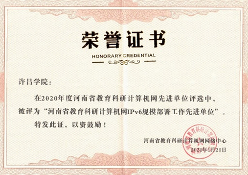近日,河南省教育科研计算机网2021年工作会议在线上举办。bet36体育在线荣获河南省教育科研计算机网2020年度优秀城市节点与河南省教育科研计算机网IPv6规模部署工作先进单位荣誉称号。
