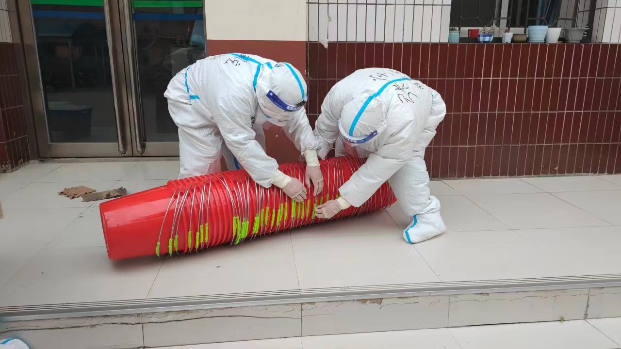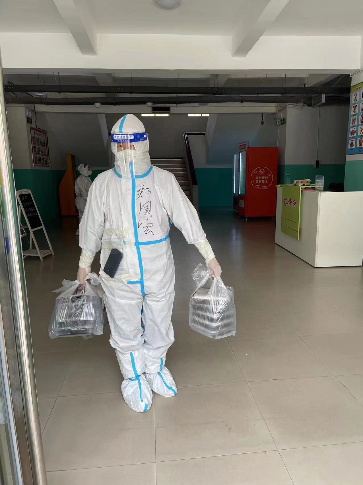 学校迅速成立兴华路校区疫情防控专班,下设5个工作组,明确人员分工,细化工作责任。各工作组人员全部24小时吃住在校,大家各司其职,全力配合,快速行动,高质量、高效率推进各项工作落实到位。在落实师生核酸采样每日两检的同时,41名志愿者包干到楼到层,每天穿戴防护服,按时为封控宿舍的学生运送一日三餐、水果点心、预防中药包等抗疫物资。