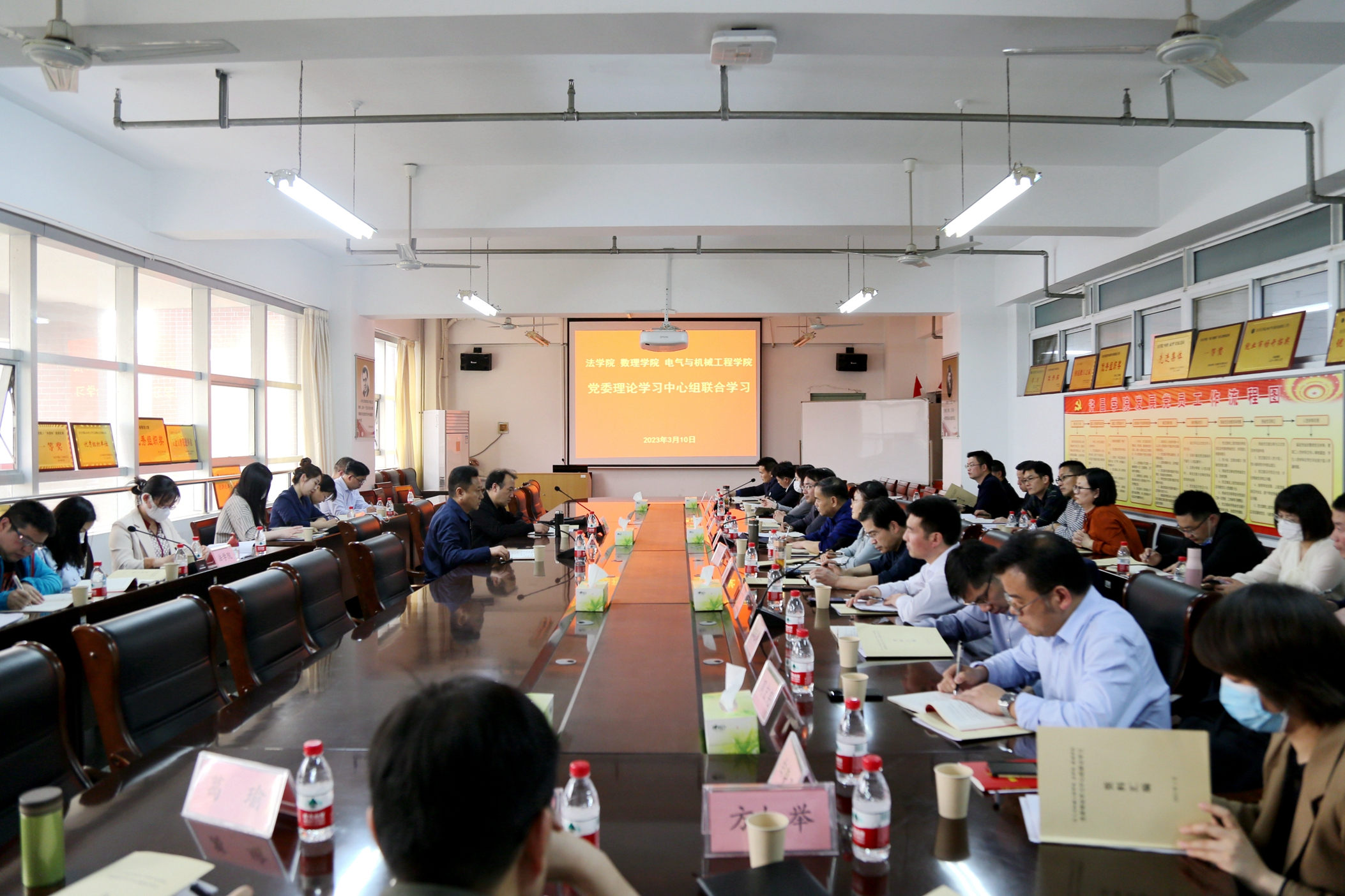 3月10日下午,电气与机械工程学院党委、法学院党委、数理学院党委在理科综合楼三楼会议室,联合开展理论学习中心组学习活动。校党委副书记孙海、党委宣传部部长王林对学习情况和效果进行巡听旁听、督导点评。