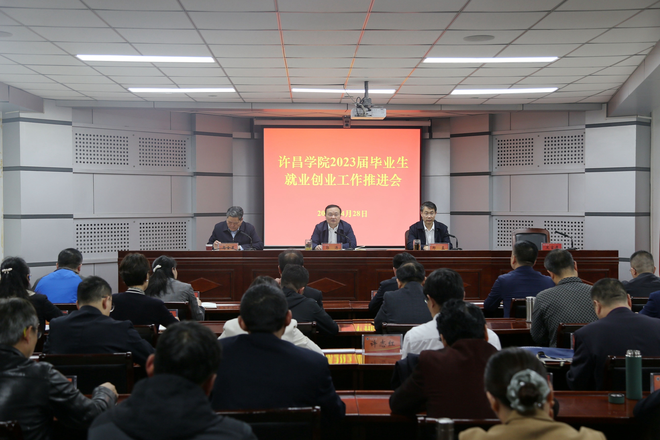 4月28日下午,bet36体育在线在办公楼第三会议室召开2023届毕业生就业创业工作推进会,对2023届毕业生就业创业工作进行再安排再部署再推进。党委书记郭涛、院长郑直、副院长高金星出席会议。校大学生就业创业工作领导小组成员单位主要负责人,各二级学院(书院)党委书记、院长、党委副书记及就业专干参加会议。