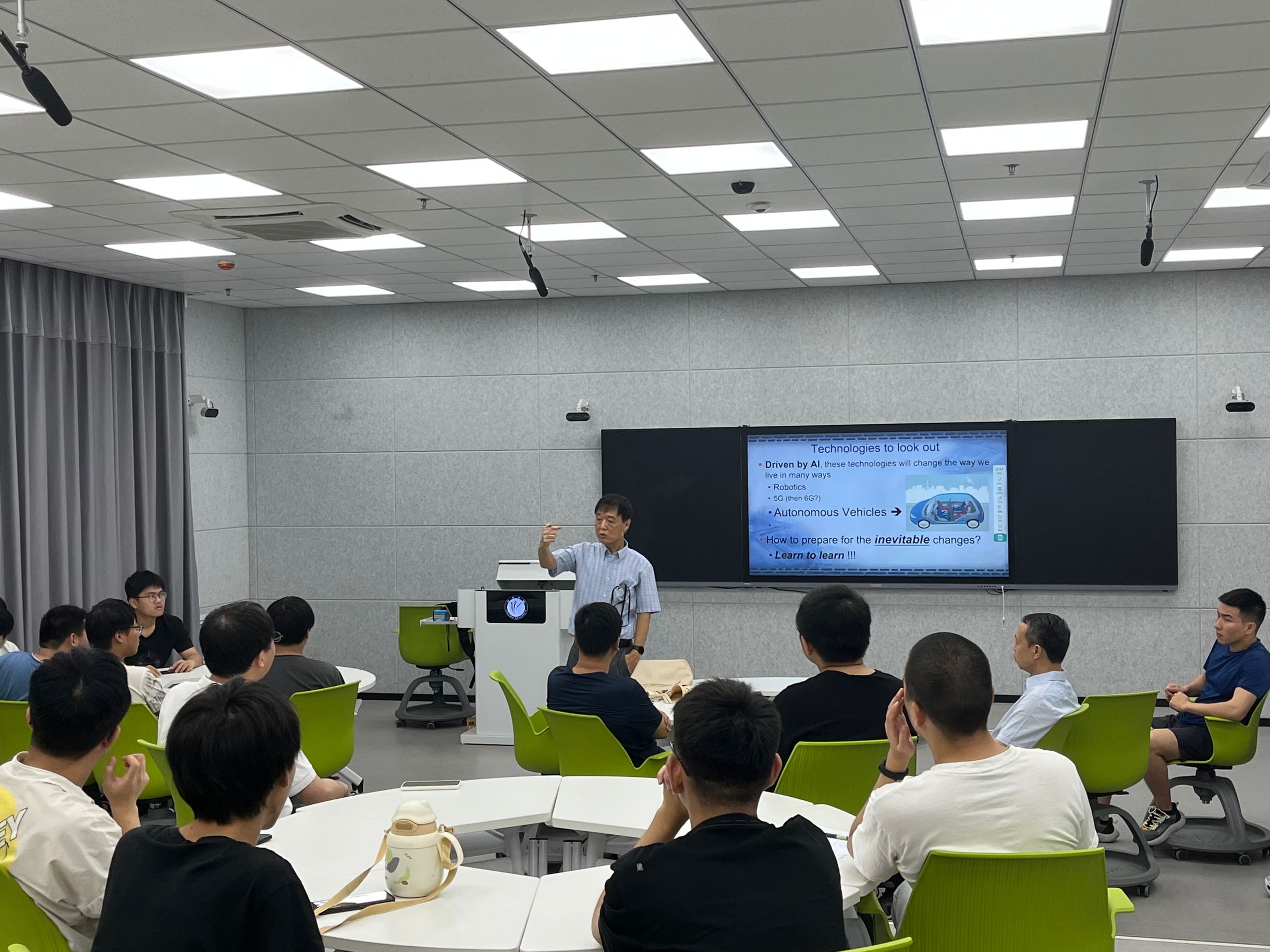 报告结束后,Jie Liu教授还与现场师生就中国AI科技发展趋势、学生如何面对新技术的挑战、教师如何利用AI技术提高教学等问题进行了深入交流与讨论。(照片由信息工程学院提供)