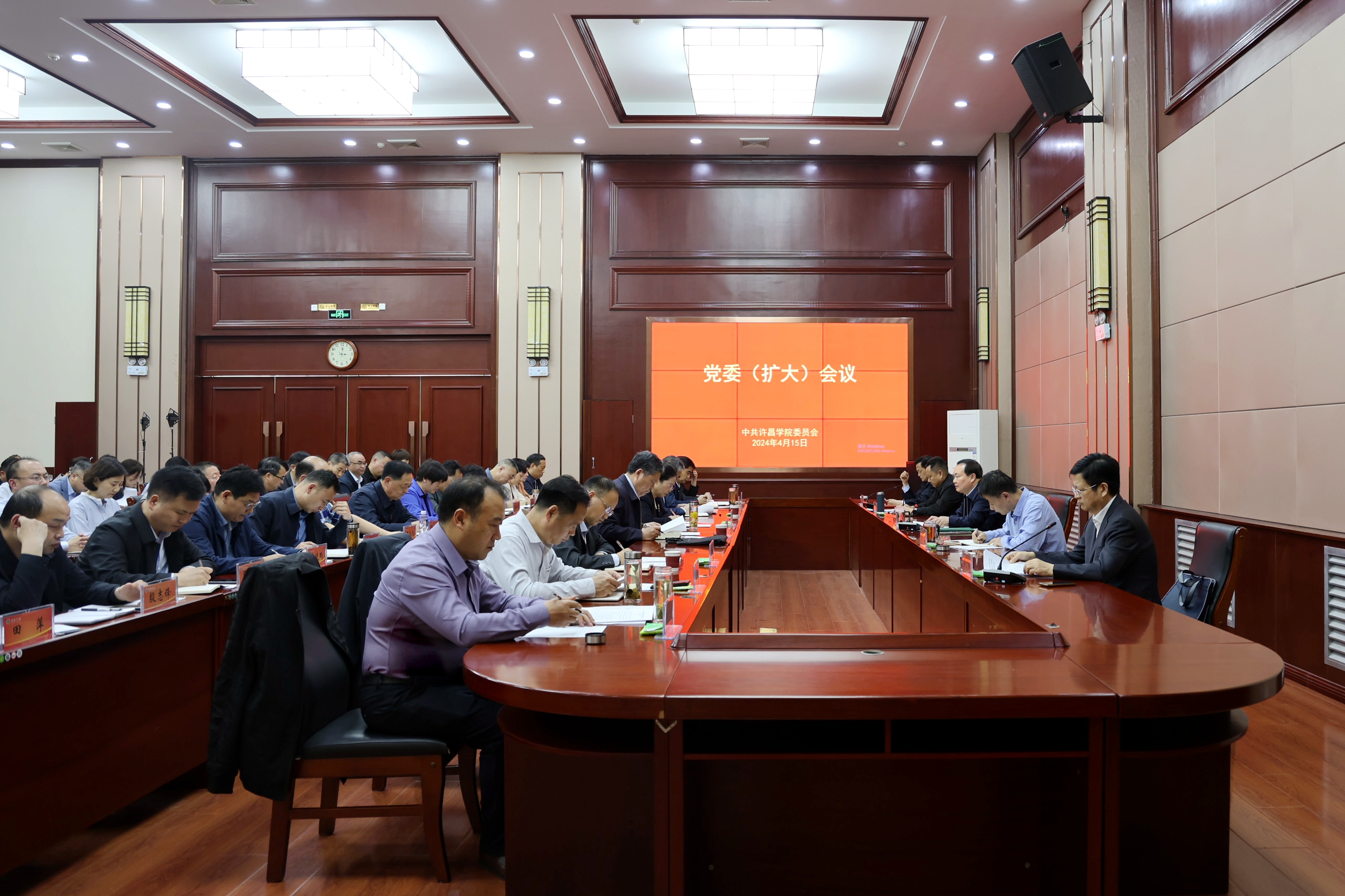 4月15日下午,学校党委召开扩大会议,传达学习中央和省委关于开展党纪学习教育的部署要求,对学校党纪学习教育工作进行安排部署。全体在校校领导出席会议,党委委员、学校党建工作领导小组全体成员、全体中层正职干部参加会议。校党委书记郭涛主持会议并讲话。