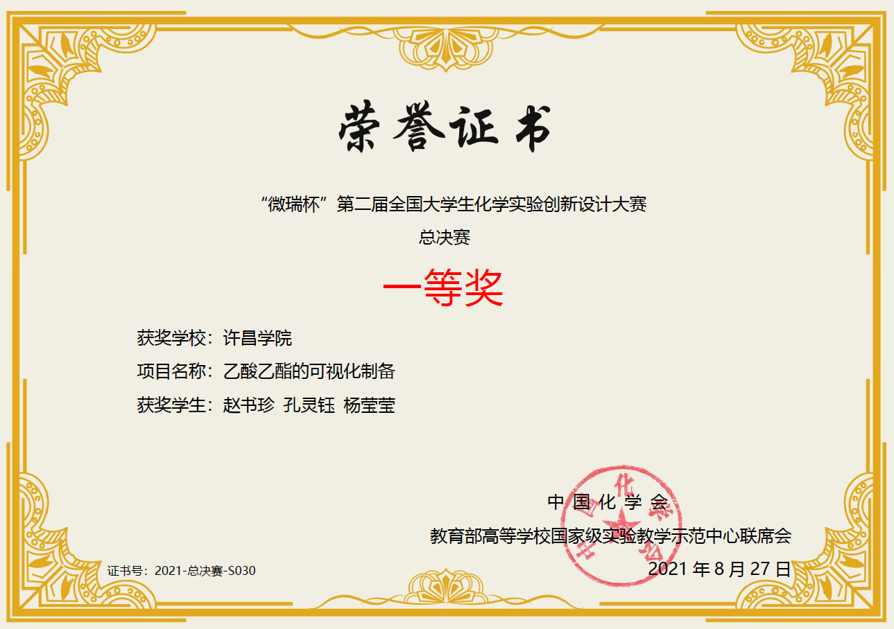8月25日至27日,“微瑞杯”第二届全国大学生化学实验创新设计竞全国总决赛在青岛举行。全国7个赛区共有90所高校代表队晋级总决赛,bet36体育在线化工与材料学院鞠志宇老师担任指导教师,2018级本科生赵书珍、孔灵钰、杨莹莹组成的“显而易见”代表队,荣获总决赛一等奖。这是bet36体育在线学生在国家级学科竞赛中的又一次突破。